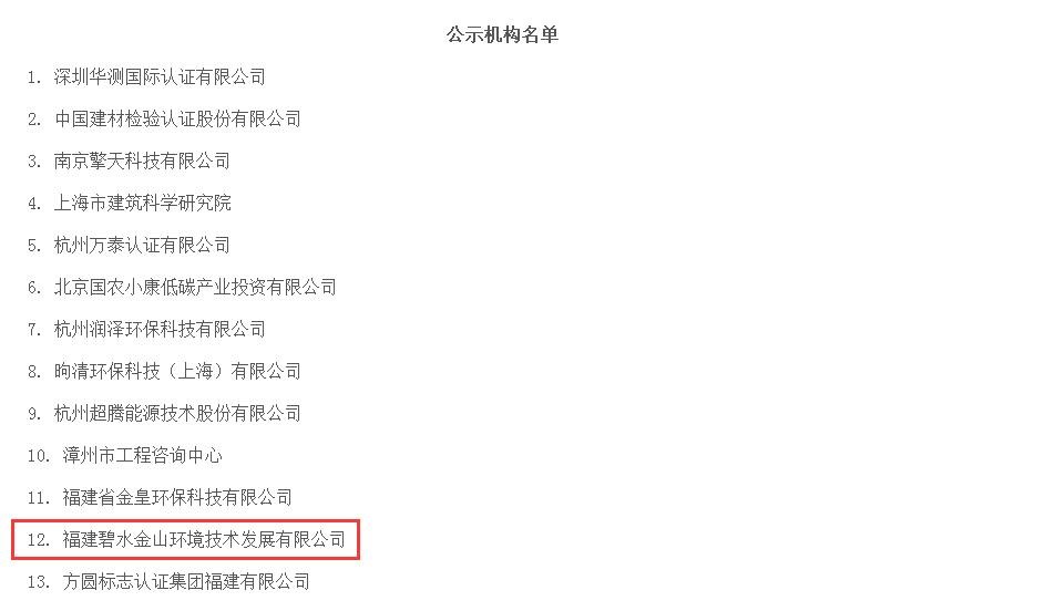 2017年9月21日,福建省發(fā)改委發(fā)布了《福建省碳排放權(quán)交易工作協(xié)調(diào)小組辦公室關(guān)于福建省第二批碳排放第三方核查機(jī)構(gòu)征選結(jié)果的公示》。經(jīng)福建省經(jīng)濟(jì)信息中心組織專家評審,我司分支機(jī)構(gòu)福建碧水金山環(huán)境技術(shù)發(fā)展有限...