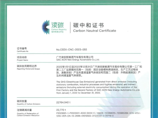 日前,廣汽埃安智能生態(tài)工廠正式獲得廣州碳排放權交易中心出具的碳中和證書,實現(xiàn)2022年度生產(chǎn)運營零碳排放,同時也響應了廣汽集團的“GLASS綠凈計劃”,達成將廣汽埃安打造成廣汽首個“零碳工廠”的既定目標。為助...