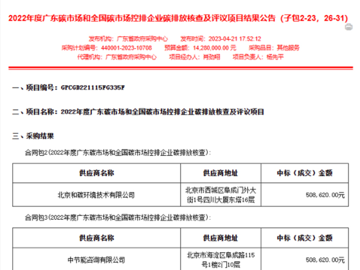 2023年4月21日,廣東省政府采購(gòu)中心公布“2022年度廣東碳市場(chǎng)和全國(guó)碳市場(chǎng)控排企業(yè)碳排放核查及評(píng)議項(xiàng)目結(jié)果公告”,科吉成功中標(biāo)第5子包。科吉是國(guó)內(nèi)較早從事重點(diǎn)排放單位碳排放核查的第三方機(jī)構(gòu)之一,擁有豐富的碳...