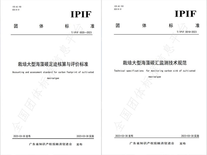廣碳所參與編制的《栽培大型海藻碳足跡核算與評價標(biāo)準(zhǔn)》(T/IPIF 0020-2023)及《栽培大型海藻碳匯監(jiān)測技術(shù)規(guī)范》(T/IPIF 0018-2023)于2023年3月30日在全國團(tuán)體標(biāo)準(zhǔn)信息平臺正式發(fā)布實施?!对耘啻笮秃T逄甲阚E核...