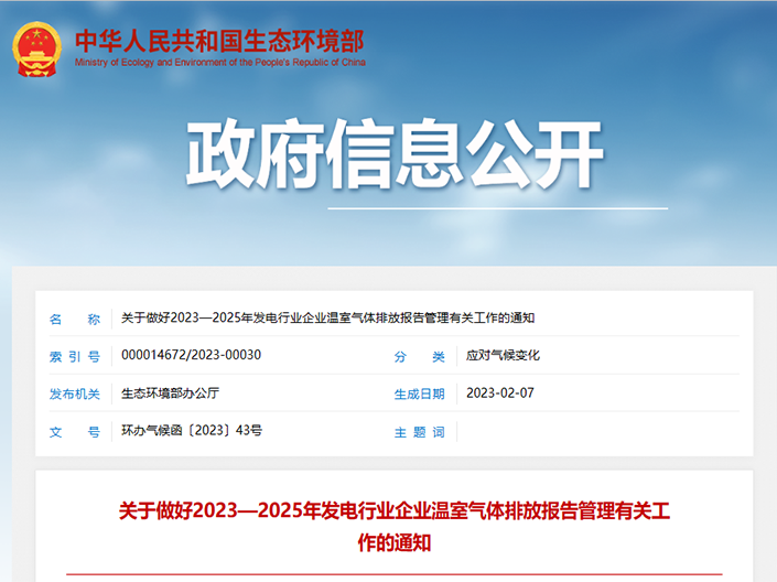 2月7日,生態(tài)環(huán)境部發(fā)布《關(guān)于做好2023—2025年發(fā)電行業(yè)企業(yè)溫室氣體排放報告管理有關(guān)工作的通知》,文件指出,各省級生態(tài)環(huán)境部門要依據(jù)《碳排放權(quán)交易管理辦法(試行)》有關(guān)規(guī)定,組織開展發(fā)電行業(yè)企業(yè)溫室氣體排...