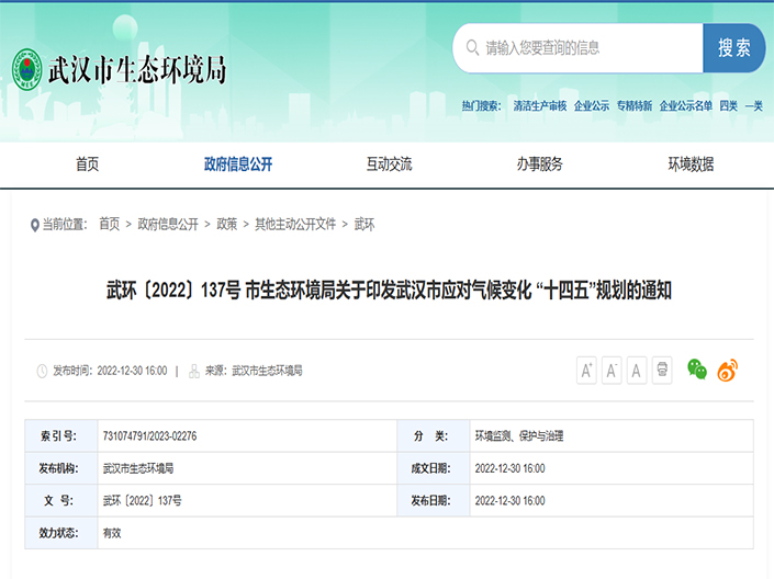 日前,武漢市生態(tài)環(huán)境局印發(fā)武漢市應對氣候變化 “十四五”規(guī)劃,規(guī)劃提出,到2025年,全市溫室氣體與污染物排放協(xié)同控制能力明顯增強,單位地區(qū)生產(chǎn)總值二氧化碳排放降低完成省下達目標,甲烷、氧化亞氮等非二氧化...