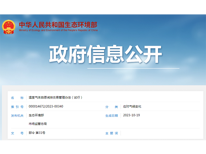 溫室氣體自愿減排交易管理辦法(試行) 《溫室氣體自愿減排交易管理辦法(試行)》已于2023年9月15日由生態(tài)環(huán)境部2023年第三次部務(wù)會(huì)議審議通過,并經(jīng)國家市場監(jiān)督管理總局同意,現(xiàn)予公布,自公布之日起施行?!?..