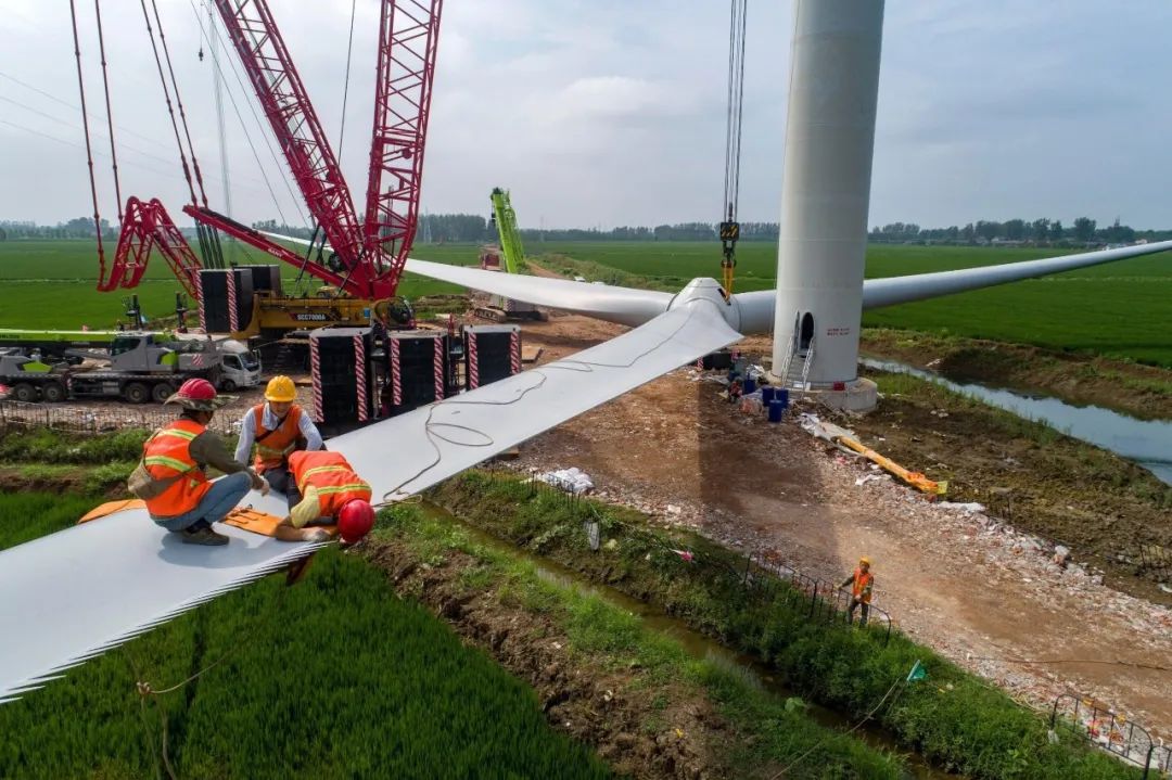 ▲江蘇淮安,技術(shù)人員正在組裝風(fēng)力渦輪機(jī)。圖片來源:He Jinghua / Alamy